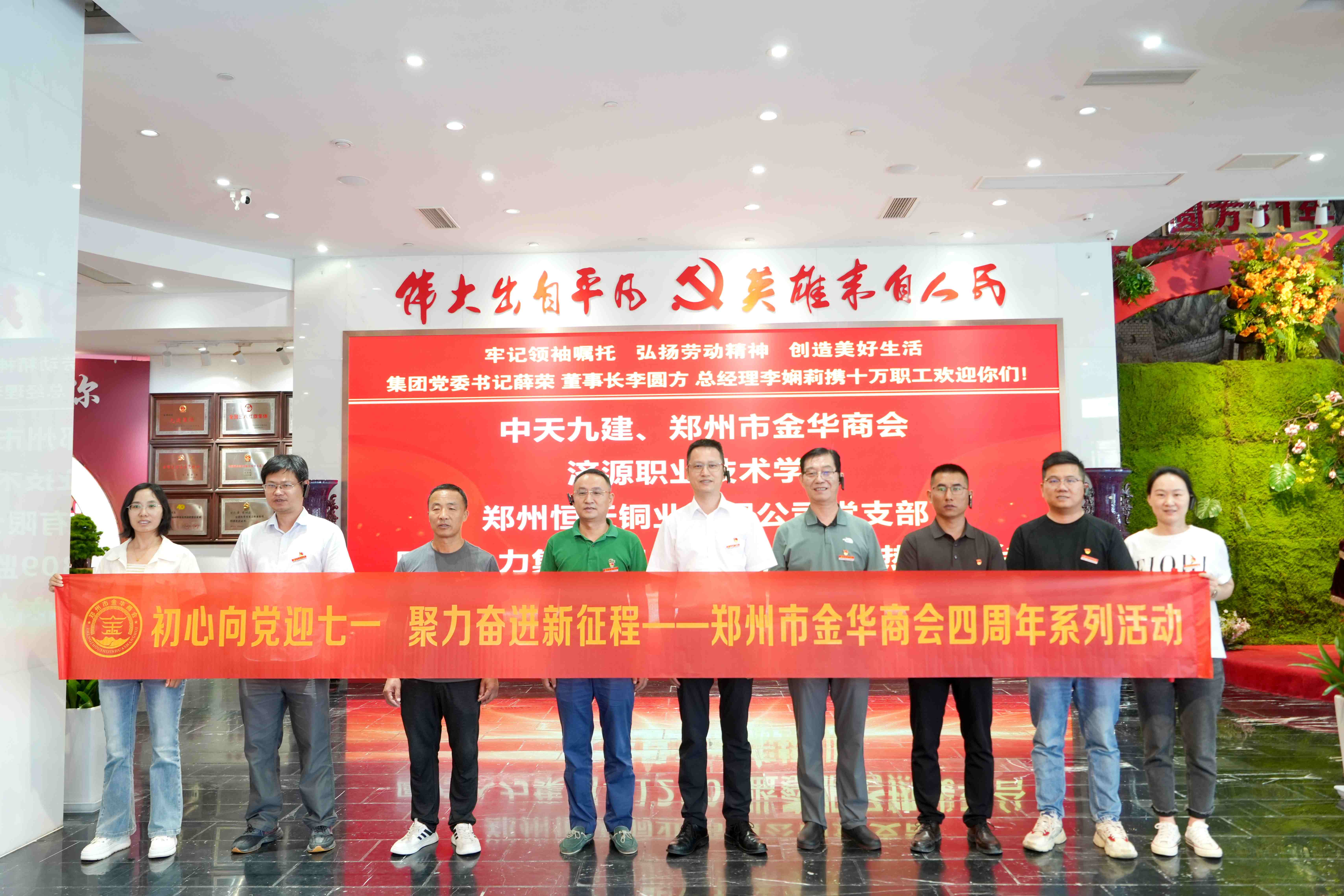为迎接中国共产党成立104周年,郑州市金华商会成立4周年,进一步增强商会成员的责任感、使命感,汲取奋进新征程的磅礴力量,6月26日,郑州市金华商会与会长单位中天九建共同前往郑州圆方非公有制党建学院开展