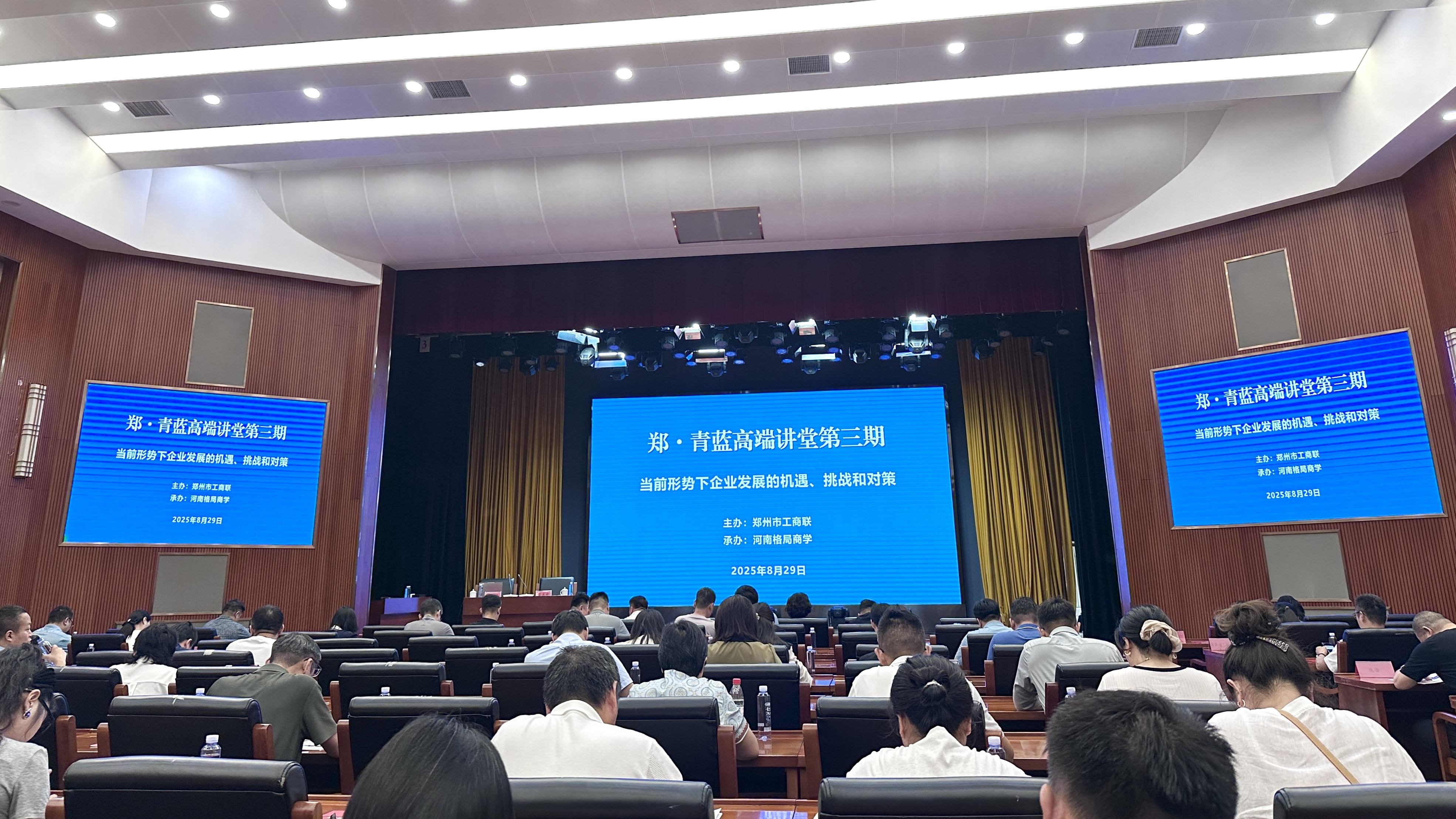 为落实民营经济人士青蓝接力行动,助力民营企业家开阔视野、优化知识结构、厘清发展规划,8月29日上午,郑州市工商联在郑州市委党校多功能厅举办郑·青蓝民营经济高端讲堂——当前形势下企业发展的机遇、挑战和对