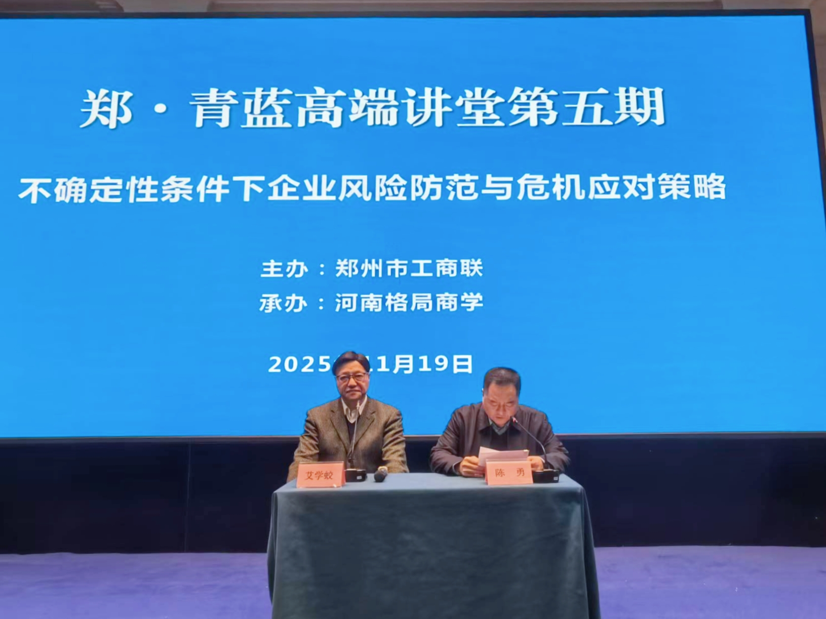 在市场经济高度自由化的今天,企业面临的风险和危机无处不在。为帮助民营企业构建突发事情及危机管理体系,提升风险防控与危机应对能力,11月19日上午,郑州市工商联在物华豪悦宴会中心举办郑·青蓝民营经济高端